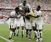 W meczu o trzecie miejsce Pucharu Narodów Afryki reprezentacja Ghany rozbiła faworyzowaną ekipę Wybrzeża Kości Słoniowej. Już pierwsze minuty meczu wylały wiadro zimnej wody na podopiecznych Claude Le Roy. W 10. minucie meczu kibice Ghany wpadli w euforię po tym jak Muntari imponującym strzałem z rzutu wolnego zdobył pierwszą bramkę dla Ghany. Feta na trybunach trwała do 32. ponieważ wtedy drugą swoją bramkę dla WKS zdobył Sanogo. Pierwszą strzelił sześć minut wcześniej. Pierwsza połowa zakończyła się planowym prowadzeniem "Słoni". W drugiej połowie do głosu doszli Ghanijczycy. Niesieni dopingiem swoich kibiców zwycięstwo zapewnili sobie w 15. minut. W 70. minucie wyrównującą bramkę strzelił Owusu. Dziesięć minut później autorem trzeciej bramki został Agogo. A wynik meczu na pięć minut przed końcem ustalił Dramani. W niedzielę finał, w którym Egipt zmierzy się z Kamerunem. Transmisja w Eurosporcie o godzinie 18:00 Autor: Łysy Źródło: Gazeta Wyborcza Dodawanie komentarzy dostępne tylko dla zarejestrowanych użytkowników. Kliknij tutaj, aby się zarejestrować (rejestracja jest darmowa). Jeżeli już posiadasz konto proszę się zalogować. |